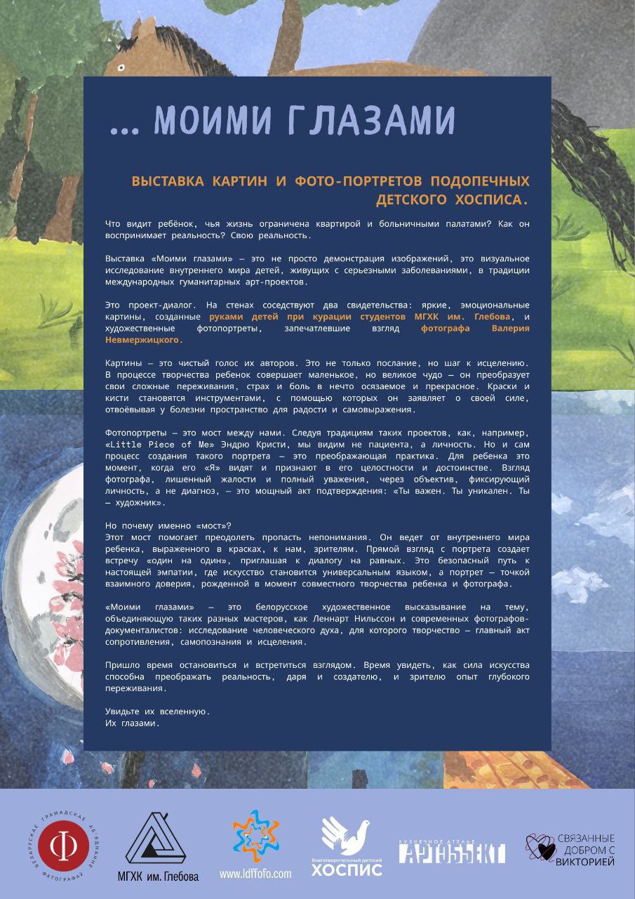 Приглашаем вас стать свидетелем удивительного художественного исследования – выставки картин и фотопортретов подопечных детского хосписа «Моими глазами».